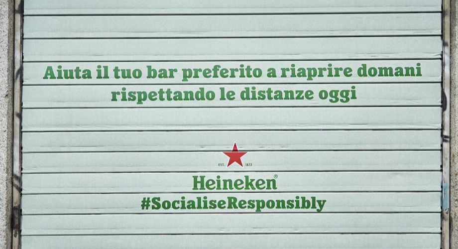 “Aiuta il tuo bar preferito a riaprire domani, rispettando le distanze oggi”: questo il messaggio apparso sulle saracinesche di alcuni bar di Milano, un invito promosso da HEINEKEN Italia al mantenimento dei comportamenti corretti al fine di garantire la possibilità di tornare, in futuro, a vivere i propri luoghi preferiti.